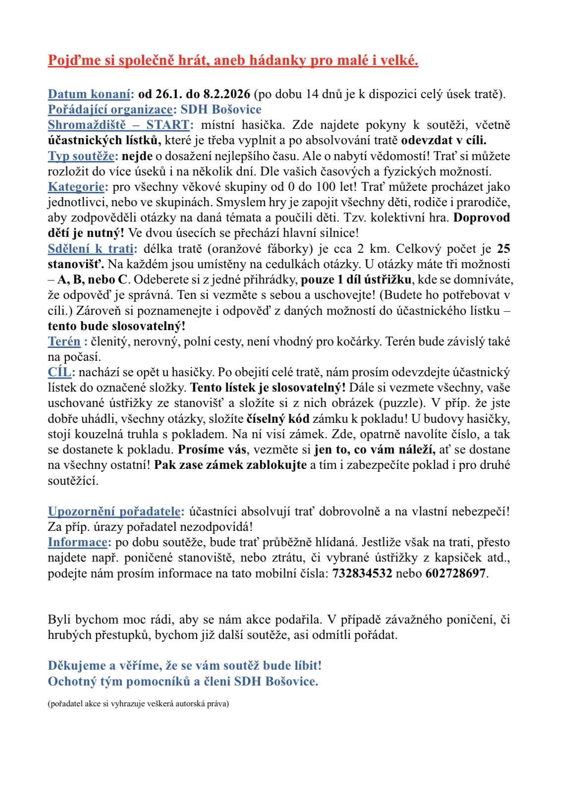 SDH Bošovice zve všechny malé i velké na vědomostní soutěž v přírodě 🌲🚶♀️